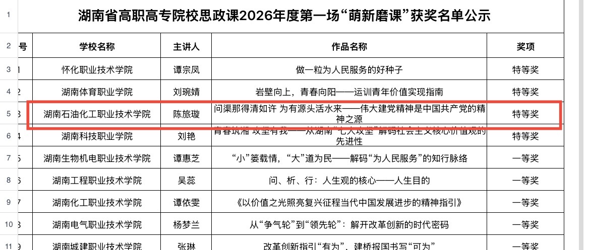 2025年湖南省高职高专思想政治理论课第二场“萌新磨课、骨干练兵”竞赛荣获一等奖1项、二等奖1项