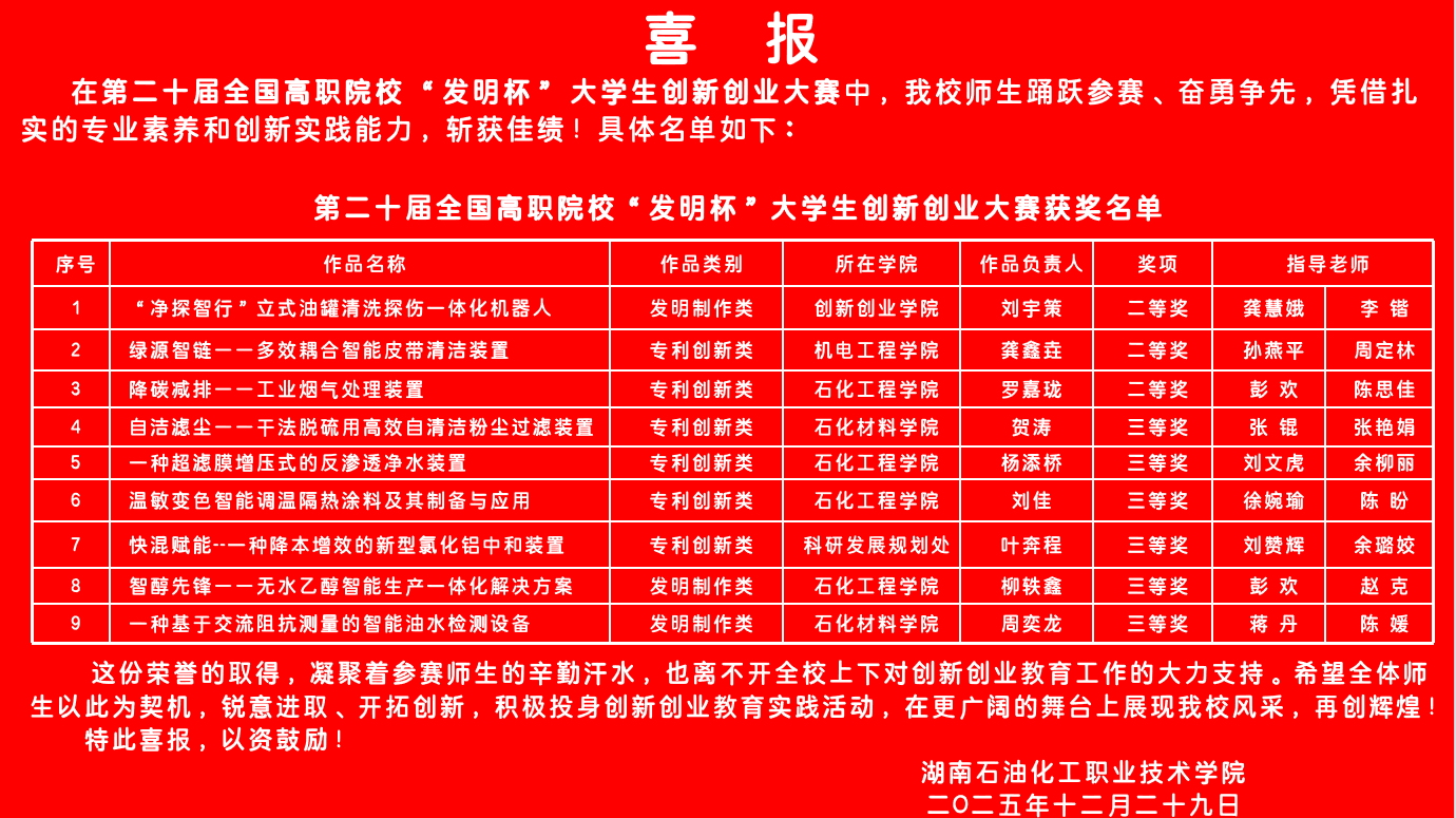 2025年度湖南省"楚怡杯"职业院校专业技能竞赛化工生产技术赛项荣获一等奖1项、二等奖1项、三等奖1项