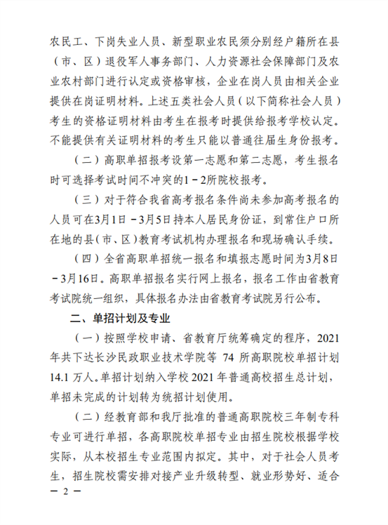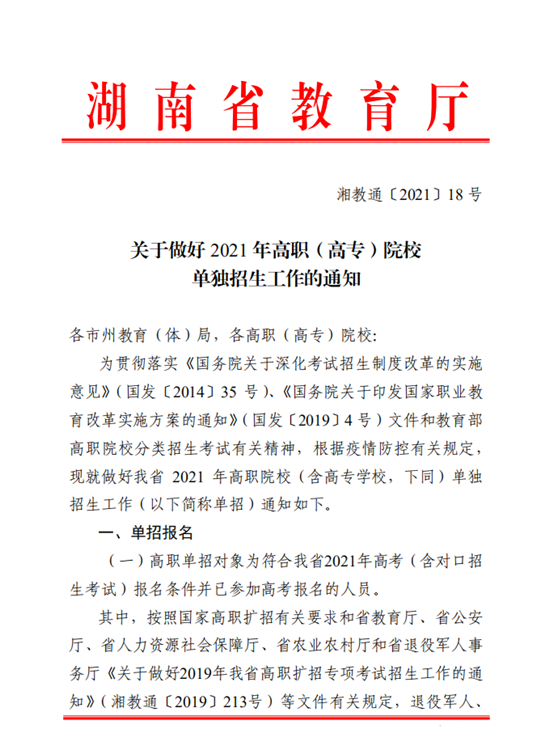 湘教通〔2021〕325号关于做好2022年高职(高专)院校单独招生工作的通知