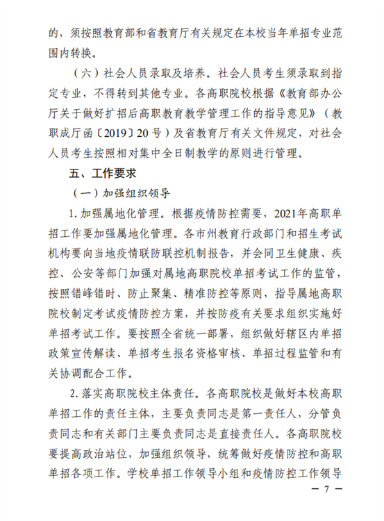 关于做好2021年高职(高专)院校单独招生工作的通知