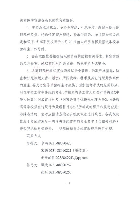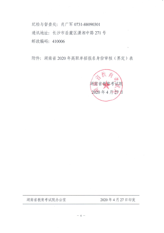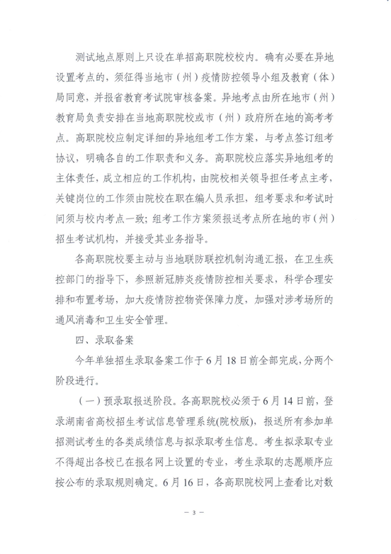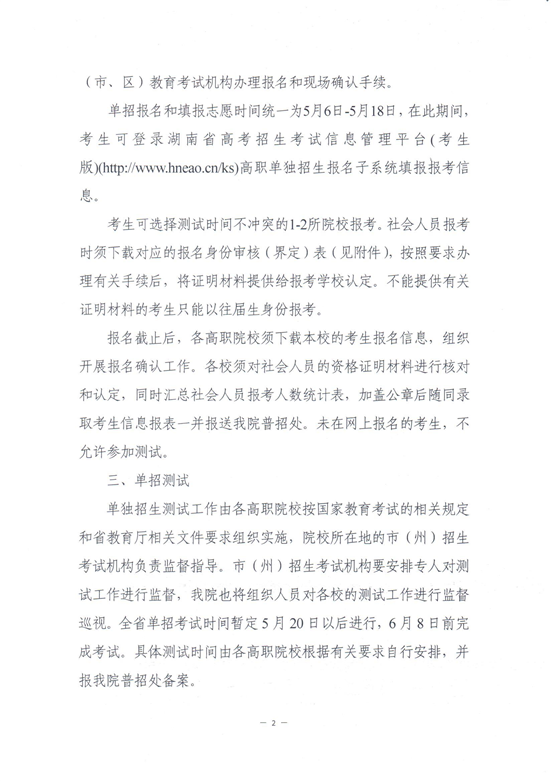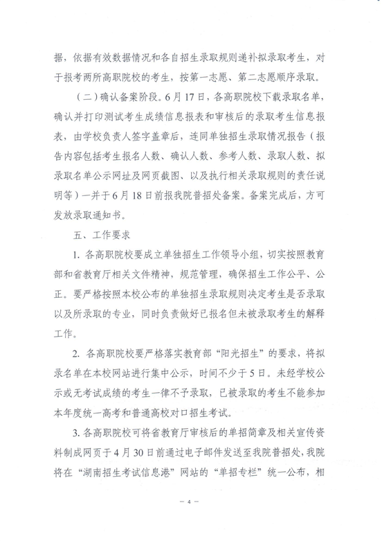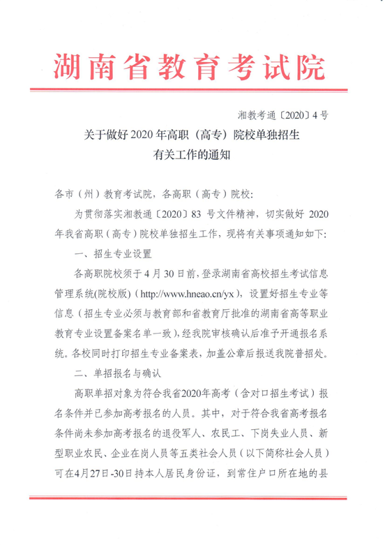 关于做好2020年高职(高专)院校单独招生有关工作的通知 湘教考通〔2020〕4号