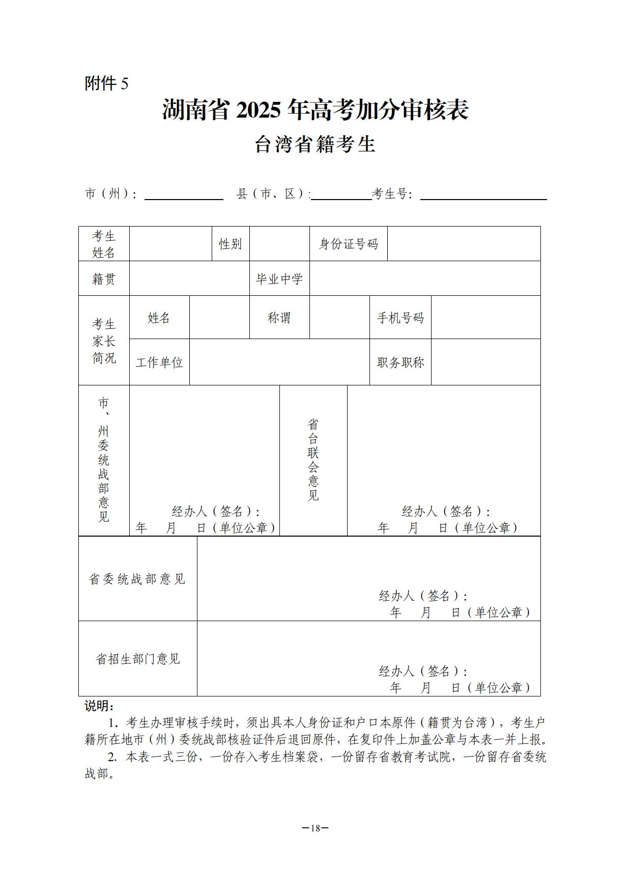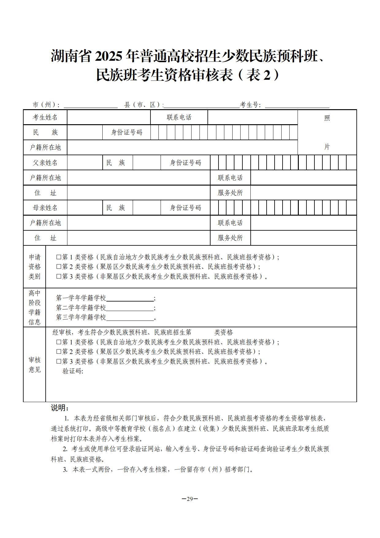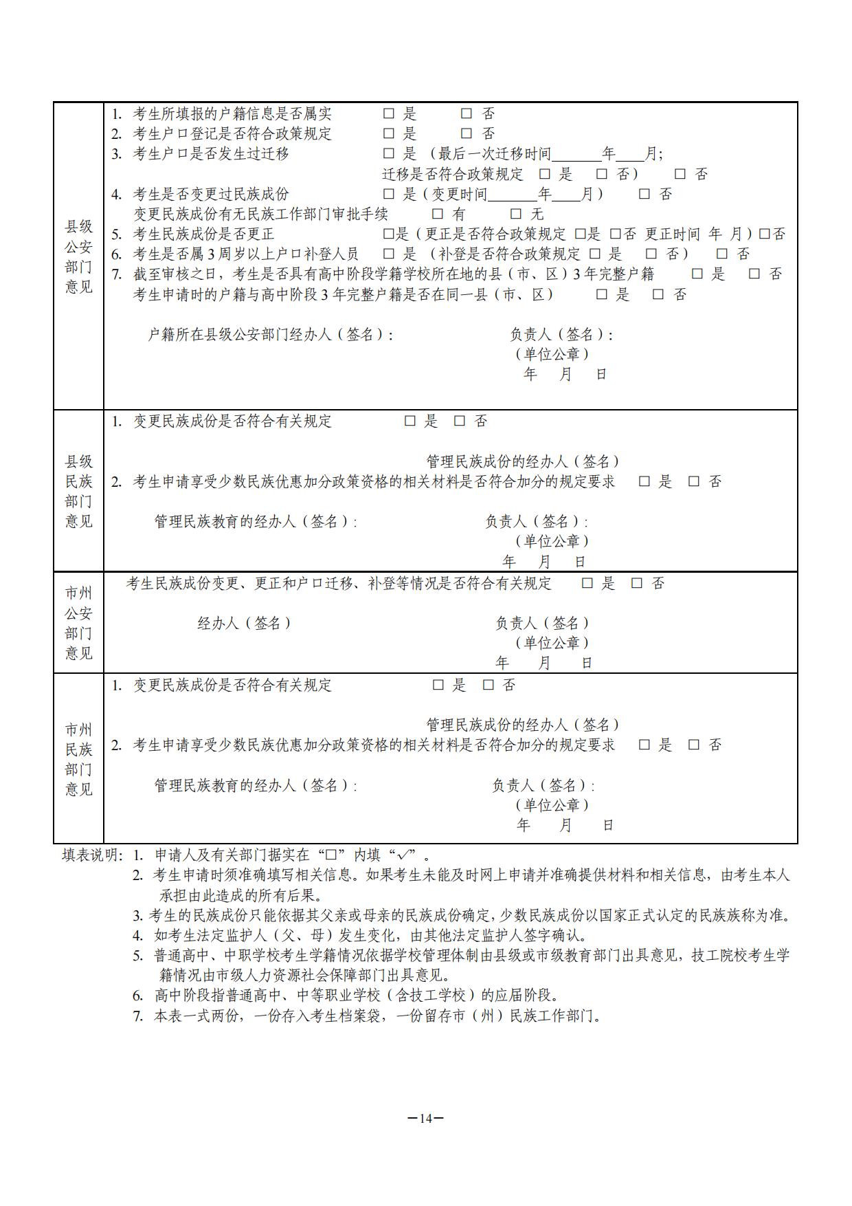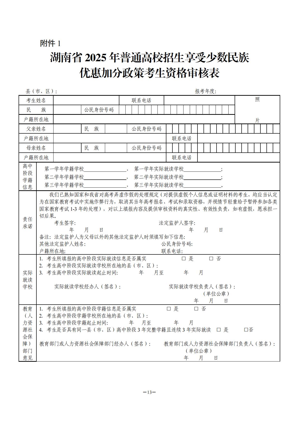 附件:1.湖南省普通高校招生享受少数民族优惠加分政策考生资格审核表