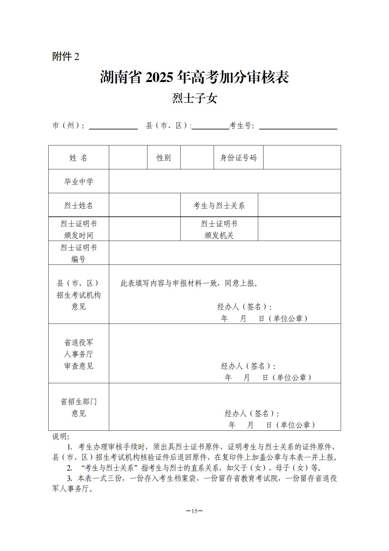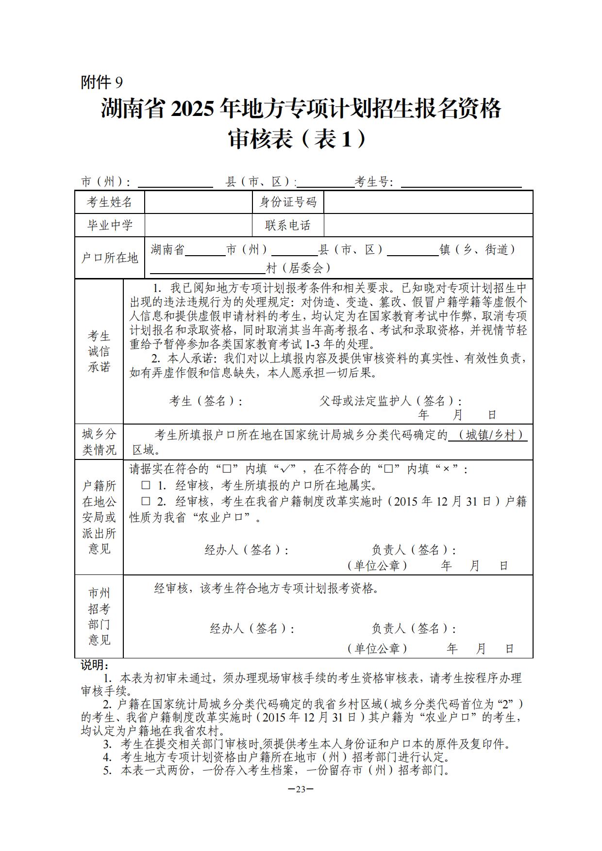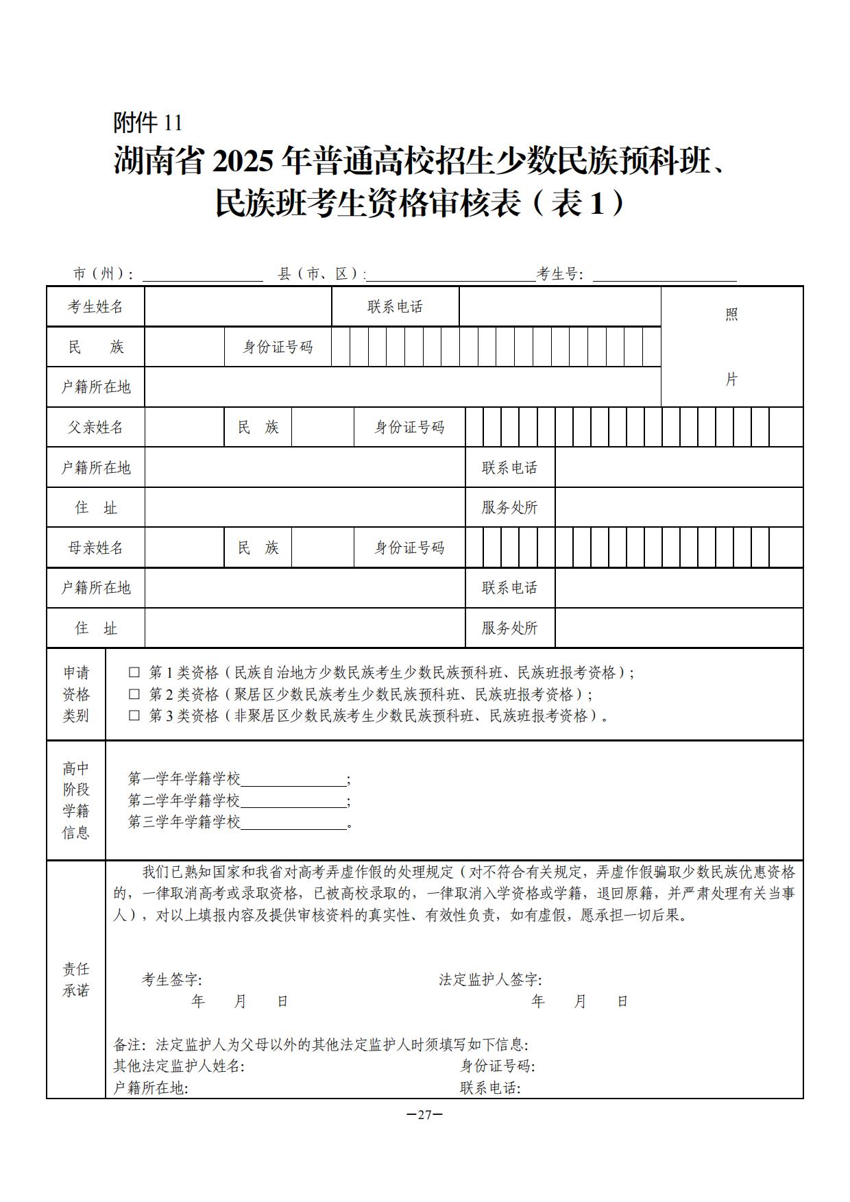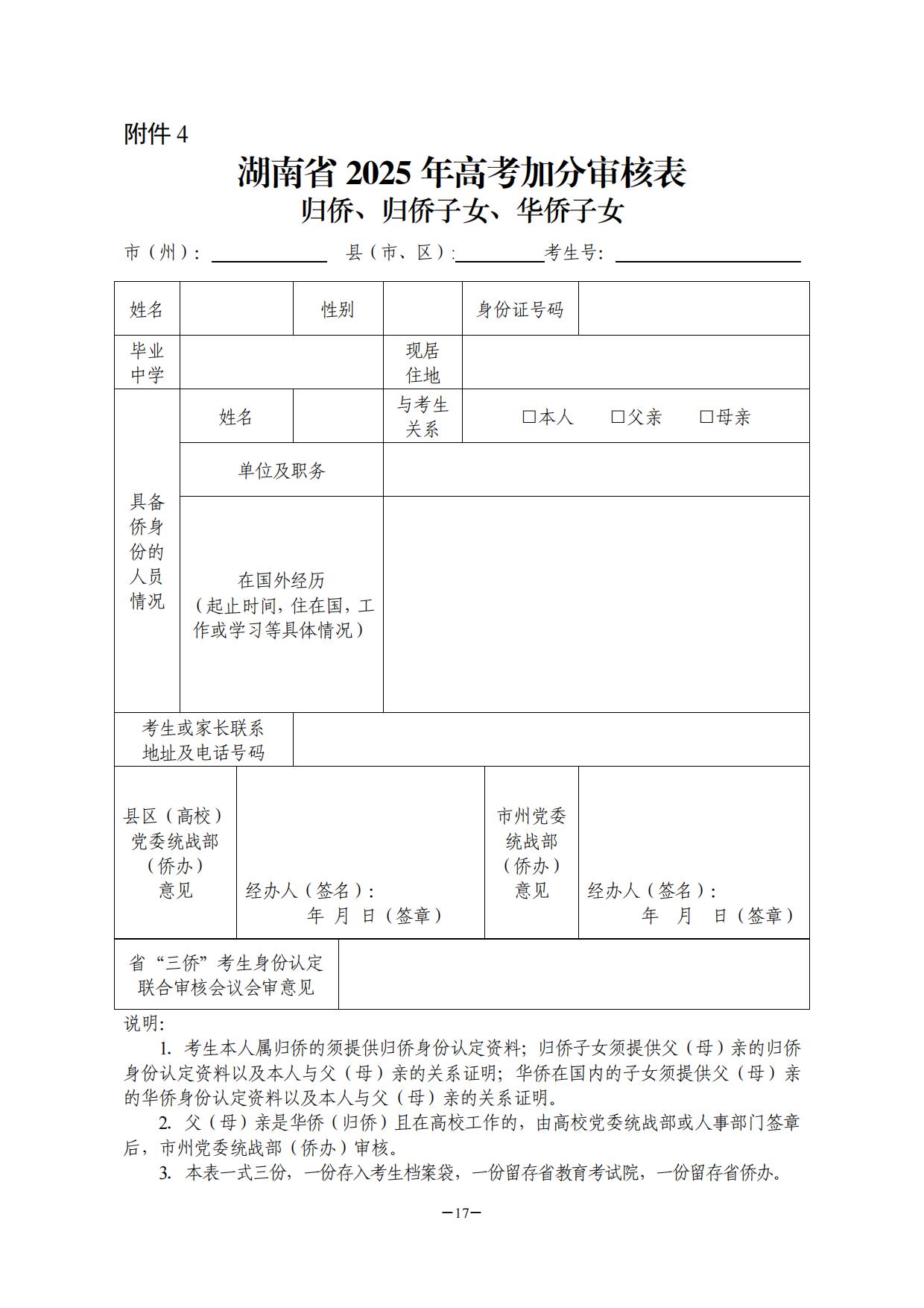 附件:1.湖南省普通高校招生享受少数民族优惠加分政策考生资格审核表