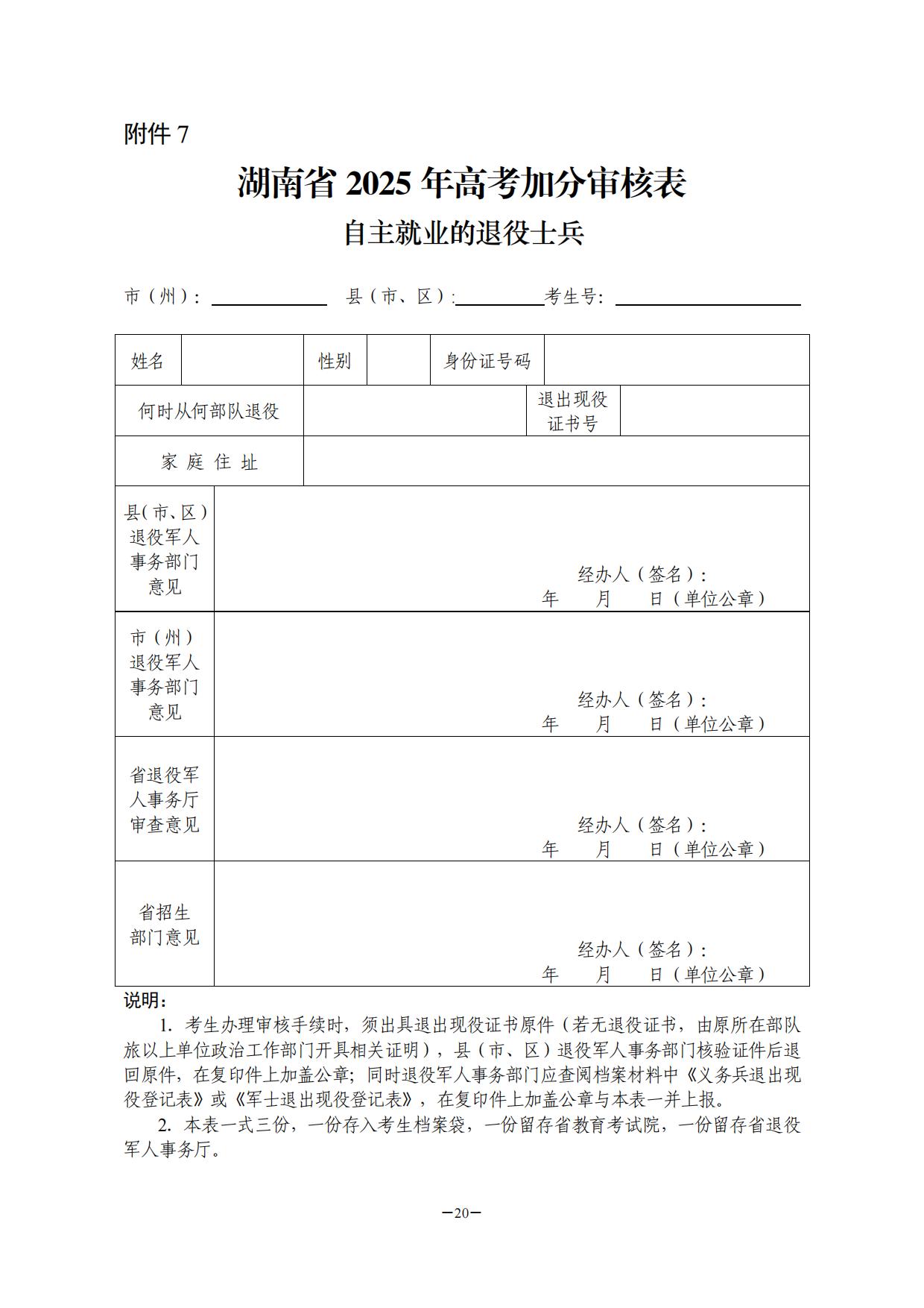 7.自主就业的退役士兵高考加分审核表