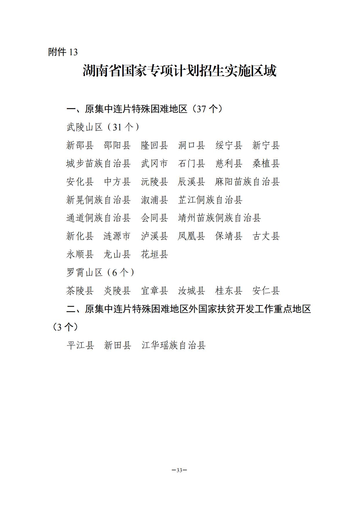 13.湖南省国家专项计划招生实施区域