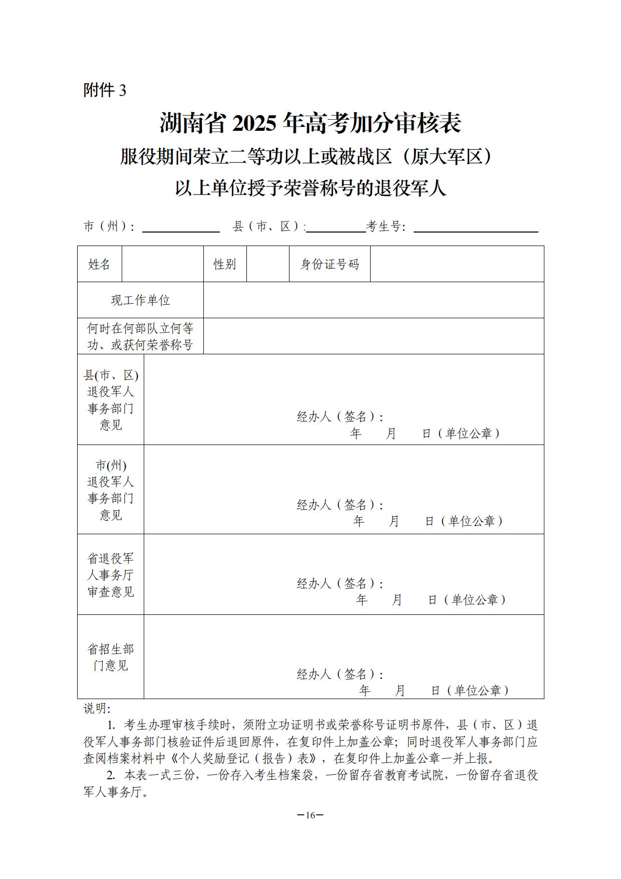 3.服役期间荣立二等功以上或被战区(原大军区)以上单位授予荣誉称号的退役军人高考加分审核表