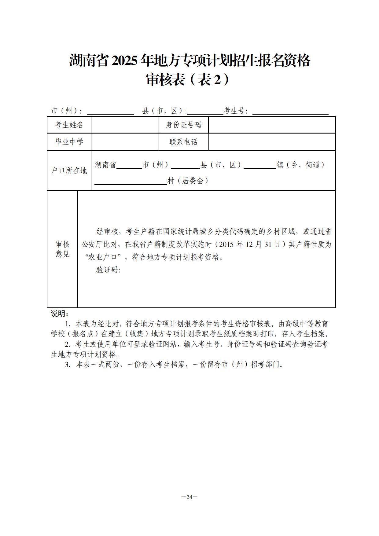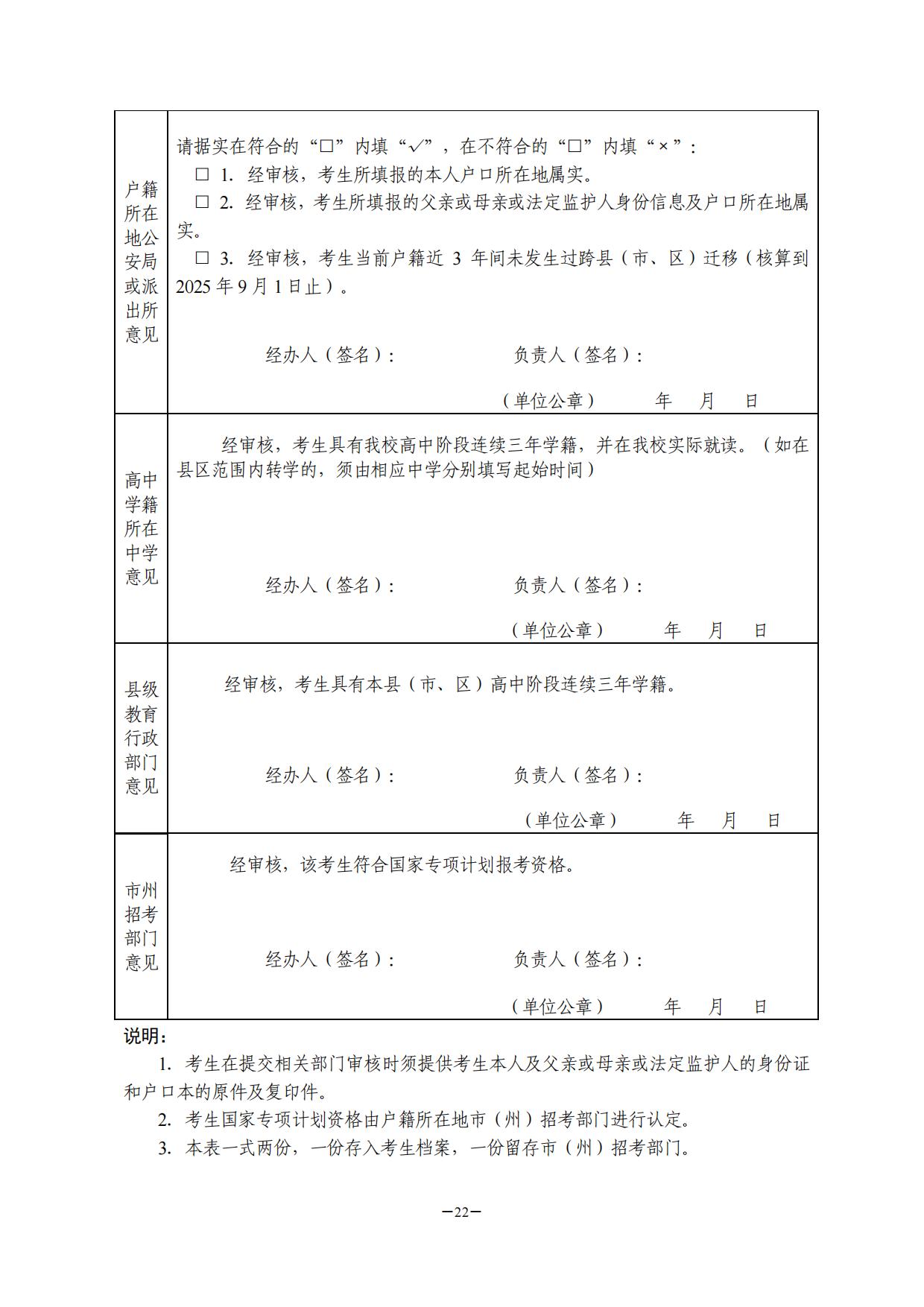 4.上交资格审核表。2025年3月14日前,考生将县(市、区)、市(州)相关部门审核完成的各类审核表交至高级中等教育学校(报名点),由高级中等教育学校(报名点)逐级上报至省教育考试院。