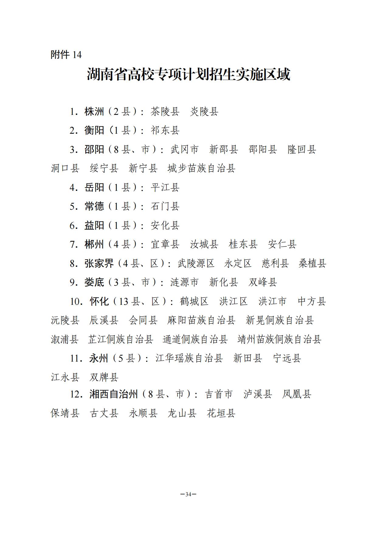 14.湖南省高校专项计划招生实施区域
